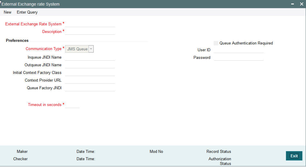Check this box to indicate that Queue Authentication is required for the External Exchange Rate System.