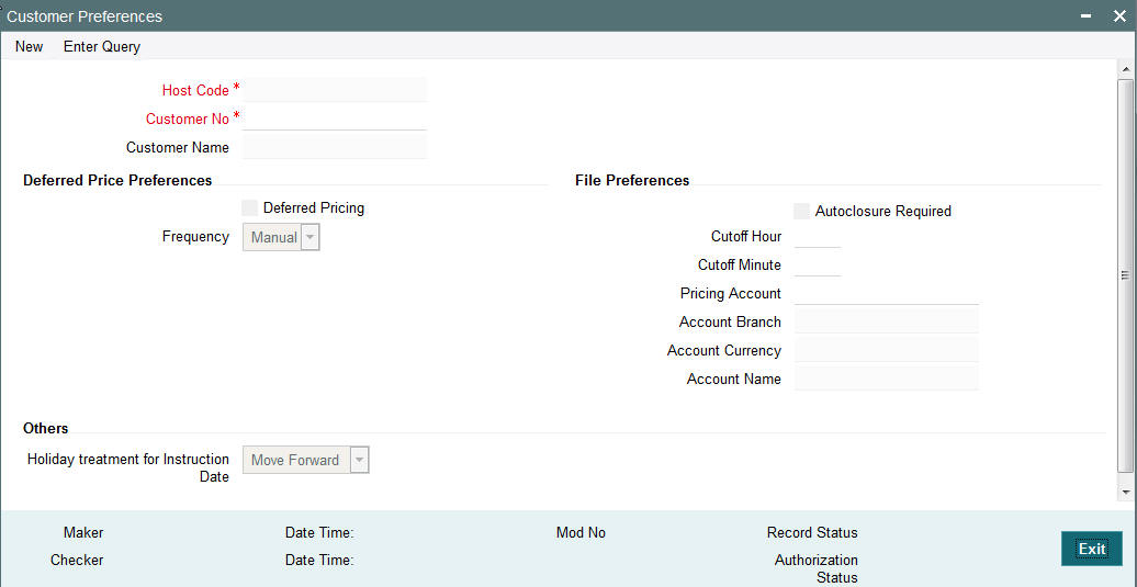 This chapter enumerates the maintenance of reference information used by the Payments. It is possible to maintain preferences and parameters applicable for different payment types using the maintenances available. In addition to common maintenances, certain common processes which are applicable across payment types are explained as well.