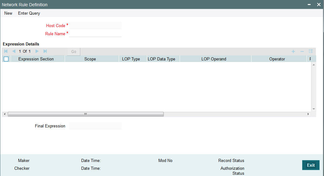 Specify the network code. Alternatively, you can select the network code from the option list. The list displays all valid network codes applicable for the logged in Host, maintained in the system.