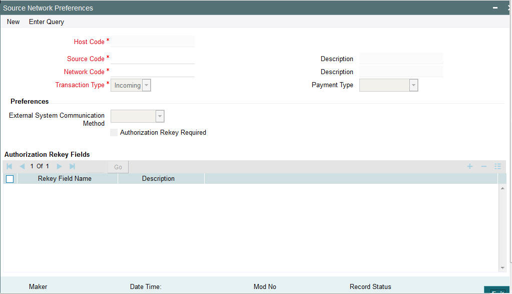 Source maintenance screen is used to identify an external system or source from which payments system receives a payment request.