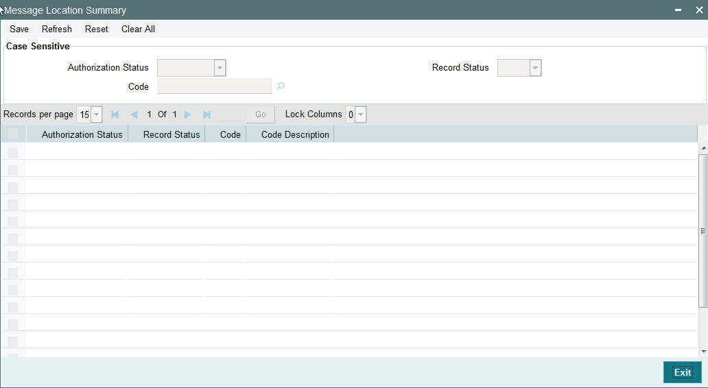You can view the summary in “Message Location Summary” screen. You can invoke the Message Location Summary screen by typing ‘PMSLOCMN’ in the field at the top right corner of the Application toolbar and clicking on the adjoining arrow button.