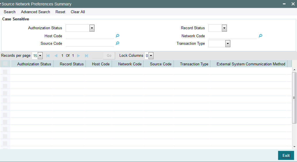 You can view all payment sources maintained in the system using ‘Source Maintenance Summary’. You can invoke the ‘Source Maintenance Summary’ screen by typing ‘PMSSORCE’ in the field at the top right corner of the application toolbar and clicking the adjoining arrow button..