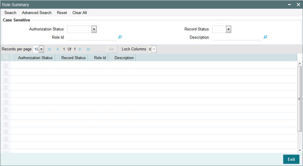 Specify the role id for which you want to set access. Alternatively, you can select the role id from the option list. The list displays all valid role ids maintained in the system.