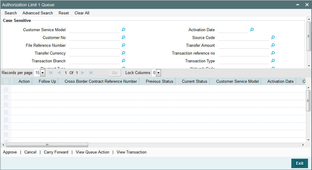 View Queue | Displays all queue activities performed for a transaction. | |||