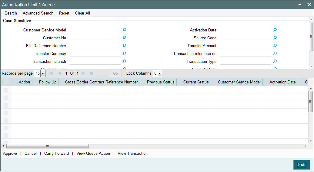 Approve | This option will enable the further processing of the transaction even if the amount exceeds authorization limit level 2. On the click of Approve button, you will be re-directed to a screen to enter necessary remarks. The transaction is released from the queue for further processing after you enter the required remarks and click the OK button. | ||