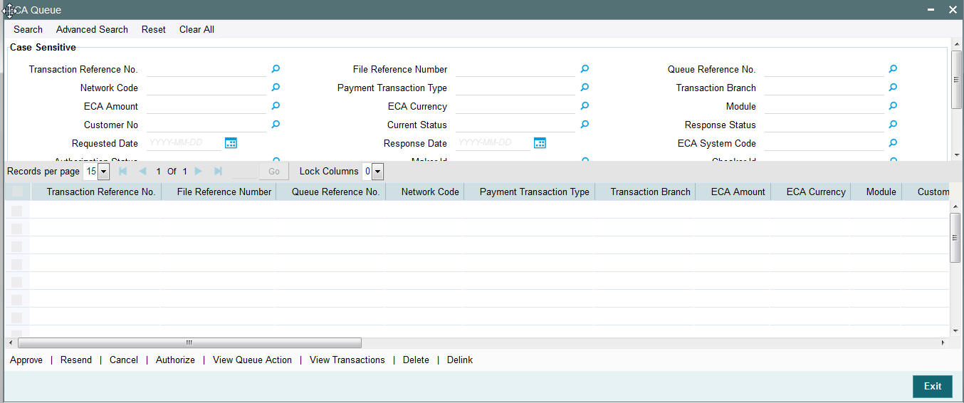 Resend | This option will allow the submission of transaction for ECA again if the transaction is in 'O' or 'T' status. New reference number will be created. Bulk resend will not be allowed. Resend Action will not support authorization. | ||