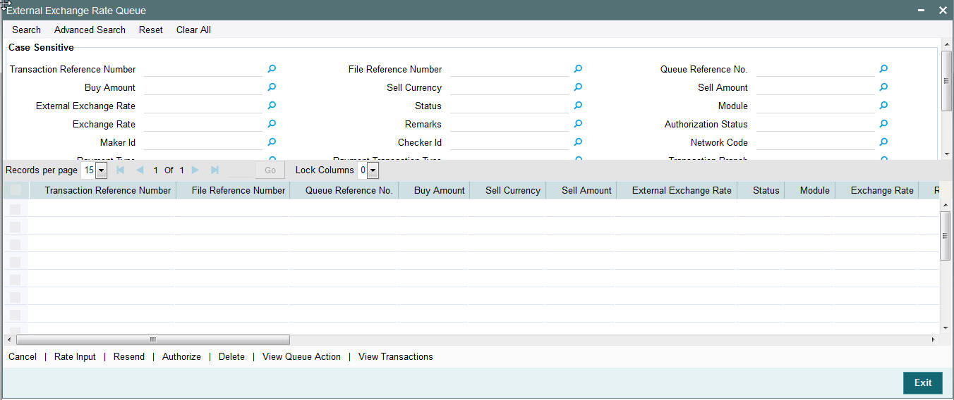 You can invoke “External Exchange Rate Queue” screen by typing ‘PQSEXEXQ’ in the field at the top right corner of the Application tool bar and clicking on the adjoining arrow button. Click new button on the Application toolbar.