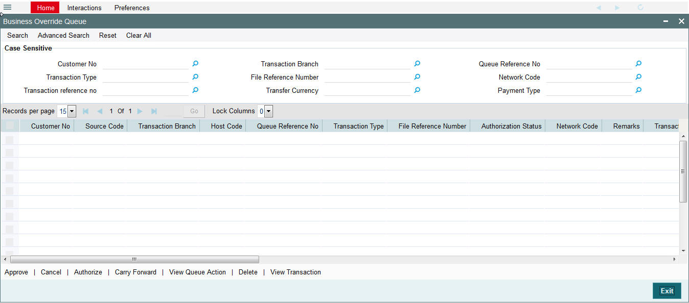Carry Forward | You can manually move the transaction for processing on next working day. Value date will be moved to next working day. Existing value date will be stored in ‘Original Value Date’ field. Debit entries will be posted on same day or on new value date based on the ‘Deferred Debit’ flag unchecked or checked at processing cutoff preference. Authorization is supported for this action. | |||