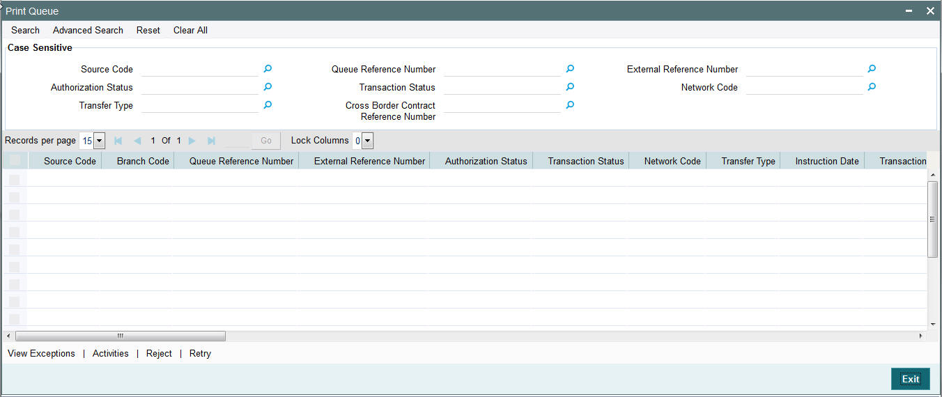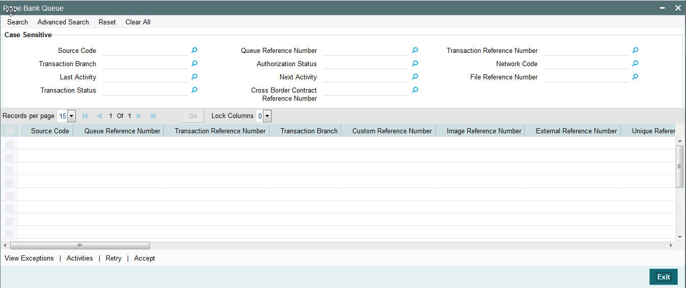 Exception queues are a logical stage of the payment processing where the payments are made available for further investigation or exception processing. If any exception is encountered during processing, payment transactions are moved to a queue specific to the type of exception. Actions that can be performed on a payment that is pending in a queue are predefined. Transactions with exceptions, pertaining to your logged in Host only are listed in the Queues.