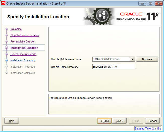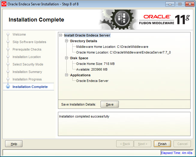 When the installation finishes, the Endeca Server files and directories are written to the Oracle Home Location (as indicated in the Installation Complete screen).