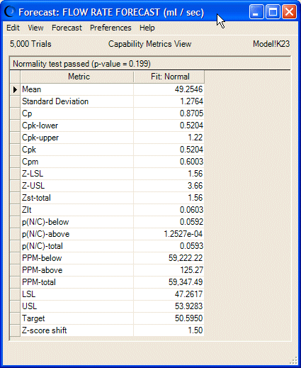 Dopo aver definito una previsione con almeno un limite di specifica (e facoltativamente un target), è possibile eseguire una simulazione e visualizzare metriche di funzionalità per la previsione.