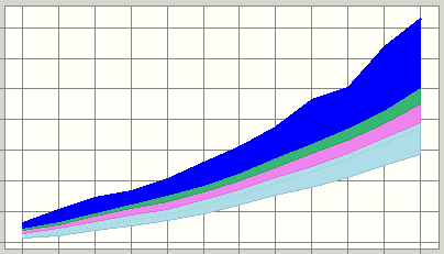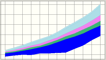較小的圖形帶一律會顯示在較大圖形帶的上方。這會掩蓋較大的圖形帶。請勿將圖形帶的實際寬度與可見部分混淆。如果要變更圖形帶大小及一次顯示一個圖形帶,請參閱選取確定性圖形帶。