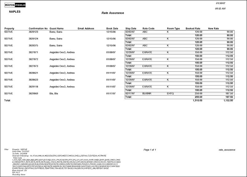 The Rate Assurance report compiles a list of confirmed, designated "rate assured" reservations (including shared) that may potentially be impacted by the property’s pricing strategy discount. Rate Assurance is a customer-focused pricing strategy that guarantees the guest the lowest rate for the life of a reservation, prior to the guest's arrival date. If rate amounts are lowered by the property before a guest’s arrival date, based on the property’s pricing strategy and the authorized decision-maker, the corresponding reservations can be manually changed to reflect the decreased rate amount. An impacted reservation may be any reservation made with a “rate assured” rate code, through a “rate assured” distribution channel, or one that was originally booked at a rate greater than that of the subsequent price change. (These specific rates can be updated individually or through the Mass Rate Refresh Utility or Global Rate Update.)
