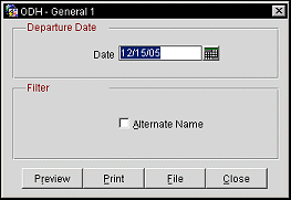 Alternate Name. When the General>Alternate Name application function is active, select the check box to display the alternate of the guest attached to the departure.