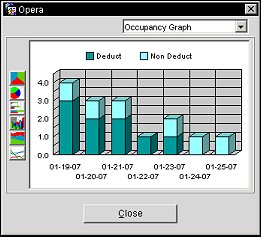 Note: When highlighted on a reservation in the search results grid, if the reservation does not have an assigned room number, the Graph will default to the Occupancy Graph. If the highlighted reservation has an assigned room number that is a unit, the Graph defaults to the Owner/Auth User Room Nights graph with the Unit Number defaulting in the Unit LOV.