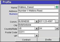 The Profile section displays information about the owner or renter that is highlighted in the Search window results grid.