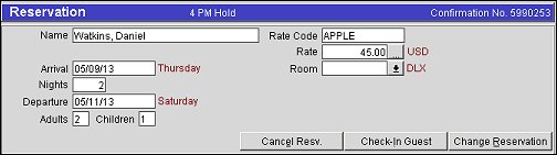 Change Reservation. For reservations that are arriving or are in house, select the Change Reservation button to display the Reservation screen and allowing you to update the reservation.
