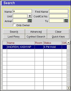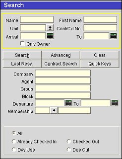 Note: When searching on unit number(s) only, all future reservations for that unit will be returned in addition to any reservations that have a departure date in the past three days of the current business date. To find older reservations, enter more search criteria.