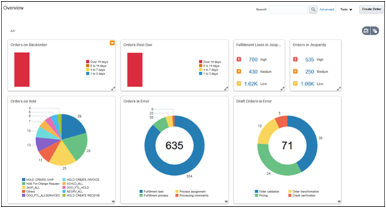 ホーム・ページまたはナビゲータの作業領域アイコンを使用して作業領域を開くことができます。作業領域を開くと、ランディング・ページが表示されます。ランディング・ページには通常、データの要約が表示されており、詳細にドリルダウンできます。多くの場合、様々な検索やフィルタを実行したり情報タイルをクリックして(ランディング・ページにある場合)、表示されるレコードを変更できます。作業領域をいくつか見てみましょう。