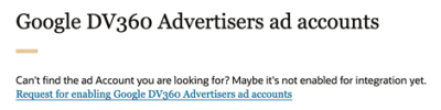 ノート: 探している広告アカウントが表示されない場合は、広告アカウントがACTIVE状態であることを確認してください。そうでない場合は、Googleアド・マネージャに移動して、広告アカウントを共有します。