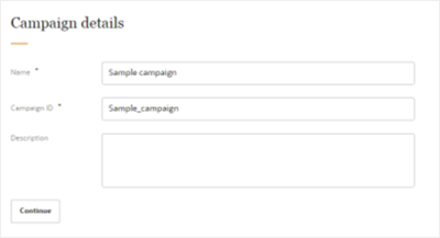 - キャンペーン名に、言語設定でサポートされている別の言語の文字が使用されている場合、「キャンペーンID」フィールドは空白のままになります。英字を使用して名前を入力する必要があります。