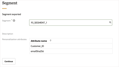 emailSha256パーソナライズ属性を持つセグメントを選択する必要があります。emailSha256パーソナライズ属性を含まないセグメントを選択すると、別のセグメントを選択するように求めるアラートが表示されます。
