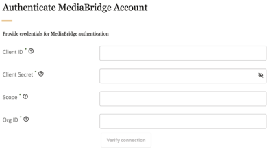 クライアントID: MediaBridgeのプロビジョニングの一部として提供されます。
