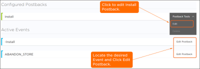 - アクティブなインストール・イベントのポストバックを構成するために、「Install」→「Postback Tools」→「Edit」をクリックします。