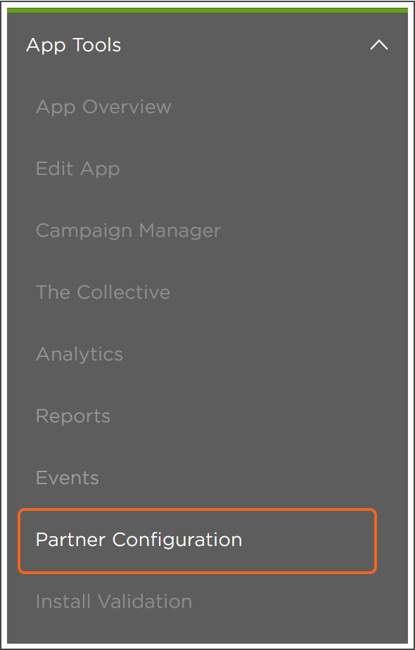 - 「App Tools」→「Partner Configuration」を選択します。
