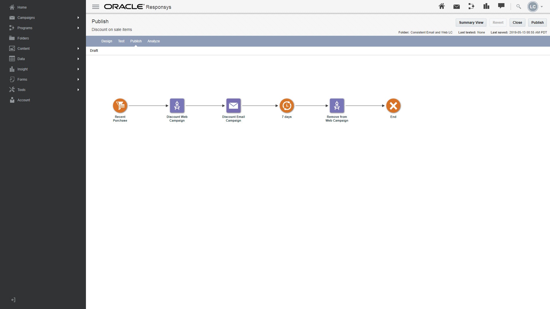 Responsys: プログラムの起動: Responsysプログラムを起動できるようになりました。Responsysでのプログラムの公開についてさらに学習します。