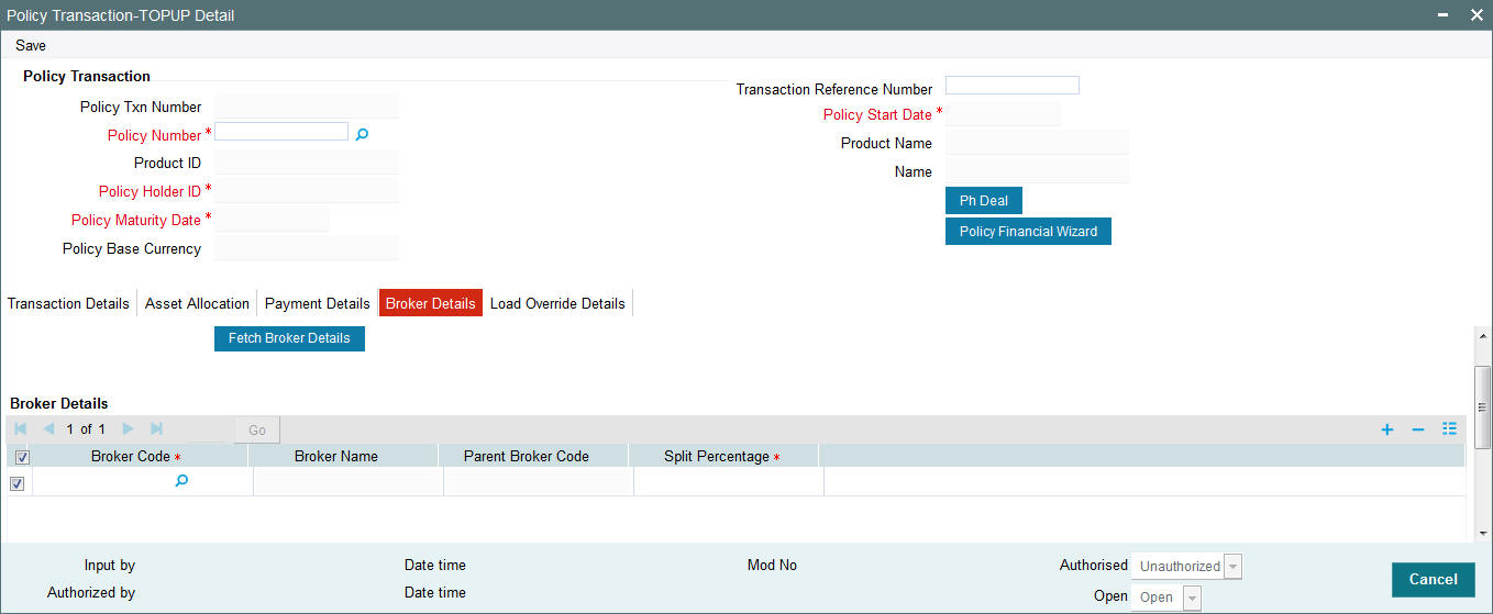 To authorize a record, you must first retrieve the same in the Policy Transaction TopUp Summary screen.