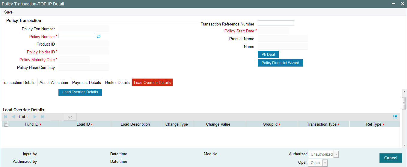 Refer the section “Load Override Details Link” in the chapter ‘Policy’ for a detailed discussion of the load override details.