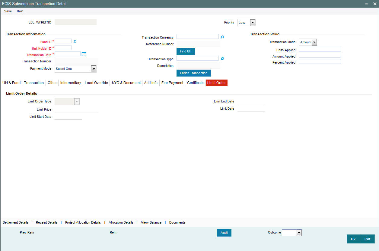 In case of future dated transactions, the transaction date cannot be greater than the future dating limit specified in the Transaction Processing Rules screen.