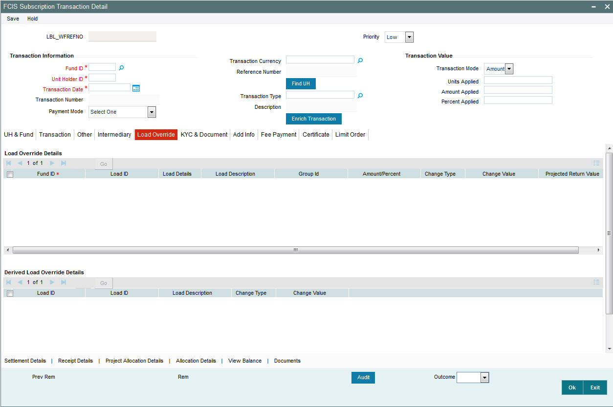 The system will display the ‘FX Deal Date’ during transaction enrichment for subscription, transactions, which you can override if required. However, if the date you specify is lesser than the application date or greater than the FX Value Date, the system will display an error message. The date should also be a TBC working day.