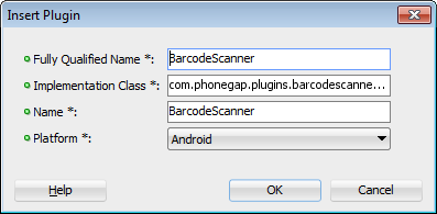 <adfmf:plugin platform="Android" name="BarcodeScanner"