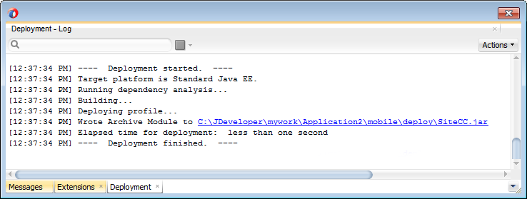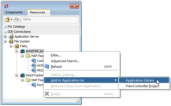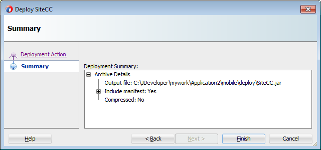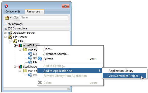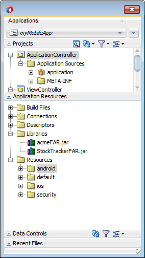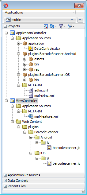 ビュー・コントローラ・プロジェクトをFARとしてデプロイします。このFAR自体には、CordovaプラグインおよびJavaScriptファイルを参照するMAF AMXおよびHTMLページなどのアーティファクトが含まれる場合があります。