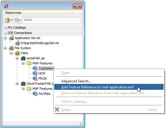 アプリケーション・アセンブラは、FARモバイル・アプリケーションを追加します(第4.13.1項「MAFアプリケーションでのFARコンテンツの使用方法」を参照)。