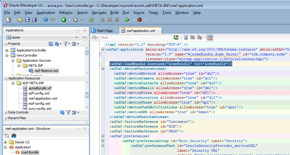 maf-application.xmlファイルの概要エディタの「アプリケーション」ページを選択する必要があります。