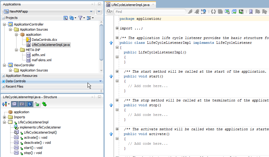 注意: アプリケーション・ライフサイクル・リスナーは引き続き、アプリケーション・コントローラ・プロジェクト(デフォルトの場所)内に存在している必要があります。 |