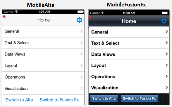 Springboardとナビゲーション・バーを表示または非表示にすることで、モバイル・デバイスの画面を最適に使用できるようになります。これらのオプションは、ナビゲーション・バーのデフォルトの表示動作をオーバーライドします。ナビゲーション・バーは、アプリケーション機能によって別の状態に指定されていないかぎり、デフォルトで表示されます。