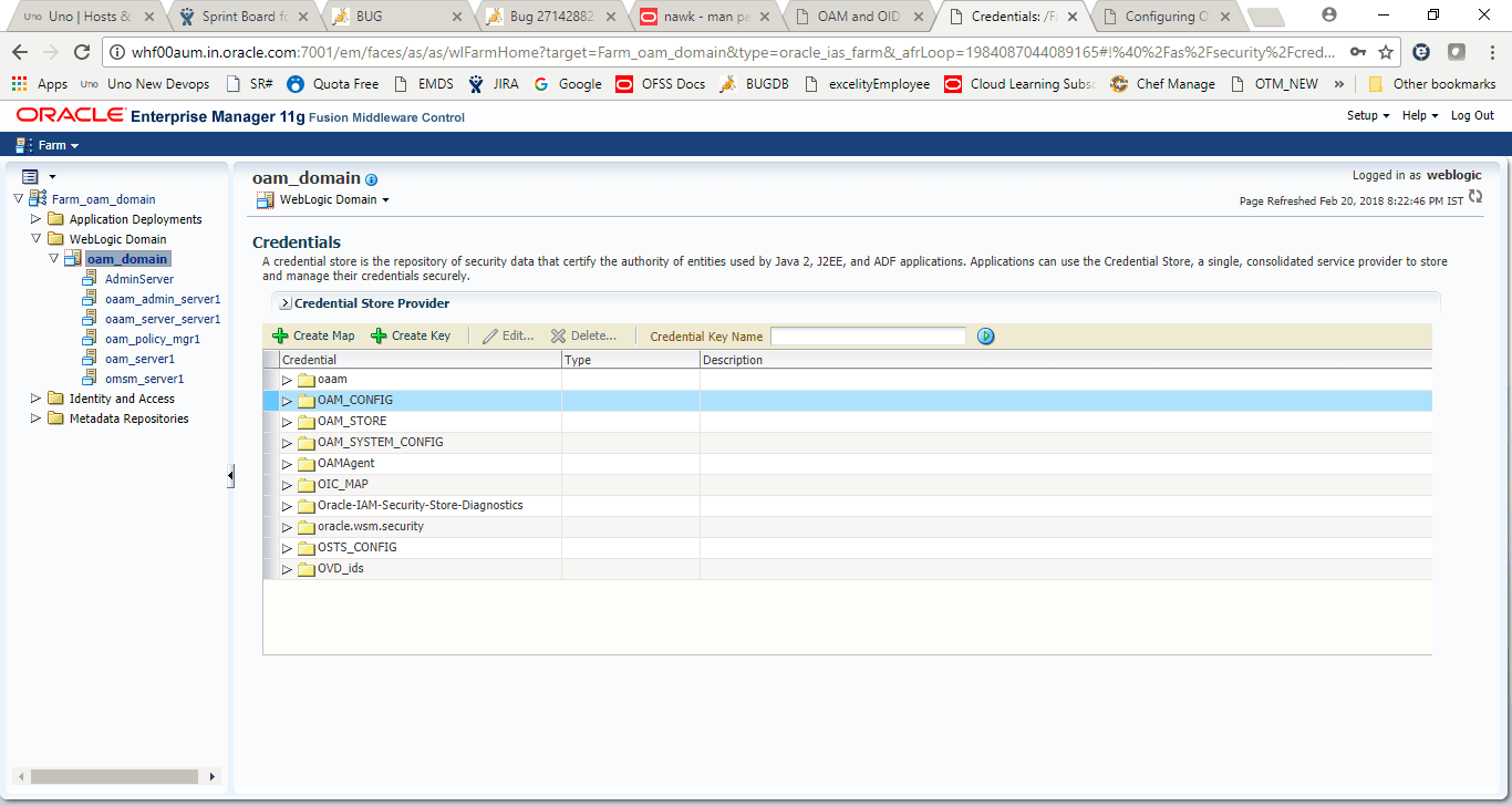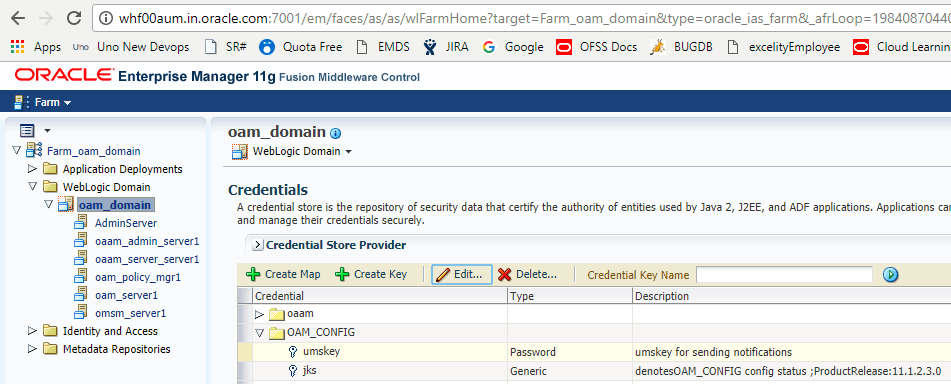 createCred(map=”OAM_CONFIG”,key=”umsKey”,user=”weblogic”,password=”welcome1″