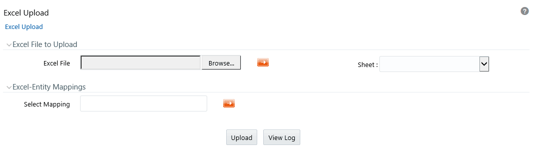 Excel Upload helps you to upload Excel Data to destination table in the database. You need to have “XLUSER” function role mapped to access Excel Upload window and retrieve mapping definition (pre-defined by XLADMIN user) to upload excel data. Excel Upload supports excel files created in Microsoft 2007 and earlier versions along with the option to map and upload multiple sheets created within a single excel file. You need to ensure that the excel data contains the dates in the format as defined in Add Excel-Entity Mapping definition.