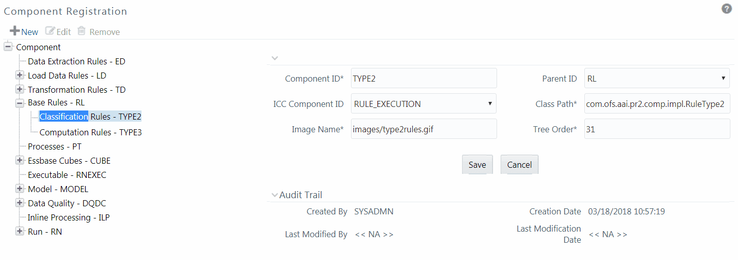 The Audit Trail section at the bottom of Component Registration window displays metadata information about the Component selected / created.