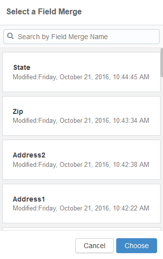 - フィールド・マージを選択します。フィールド・マージ名で検索すると、目的のフィールド・マージをすばやく見つけることができます。