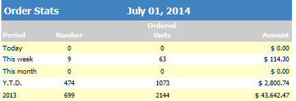 The totals for the current month include days that occur after the date selected through the Calendar option. Example: Today is August 27, and you use the Calendar option to select August 1. The totals displayed under This month include all orders that occurred for August to date, including activity taking place after August 1. |