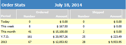 • Order and shipment statistics for the day, week, month, year, and previous year, or a company-specific image for users who do not have authority to view this information