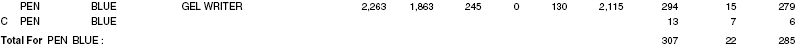 Note: The Current Inventory Status totals are normally zero for items you do not actually stock in inventory, such as set and continuity master items, non-inventory items (including subscription items, or membership items if they are flagged as non-inventory), and drop ship items. Also, these totals are blank on report lines flagged with a type of C, indicating that the Shipped, Returns, and Net Qty totals for the item represent orders where the item was sold as a component of a set.