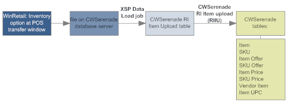 Purpose: Items and related information from WinRetail, such as pricing, are loaded into the RI Item Upload table.
