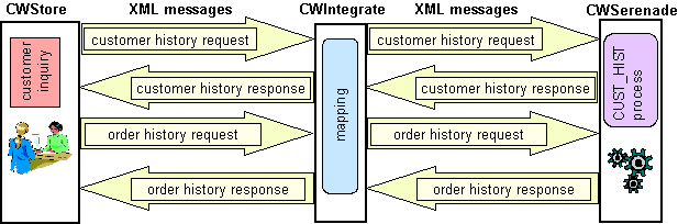 A typical customer history inquiry flow would begin when a customer in a retail store has a question about an order placed in CWSerenade.