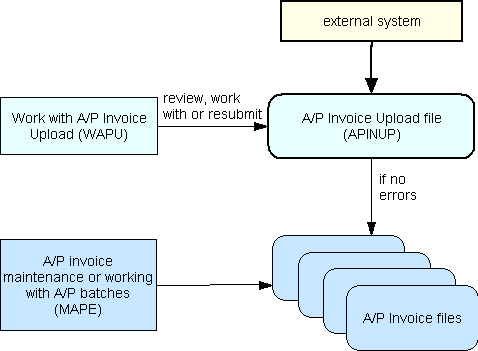• If Errors Occurred, Resubmit using Work with A/P Invoice Upload Errors (WAPU)